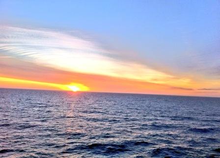Enfin, pas tout à fait, car le bateau vogue sur la mer et si la ligne d’horizon reste bleue et comme immobile, on se sent très loin…