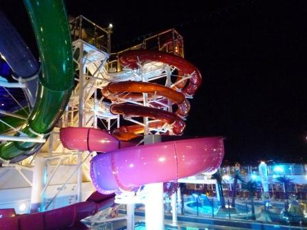 lounges, des shows venus de Broadway, un spectacle de magie, des duels au piano, des toboggans aquatiques, un complexe sportif, un spa, un casino, avec des ambiances inspirées d’Ibiza, des plages californiennes, du Key West d’Hemingway, … il y en a pour tous les goûts. Même pour ceux qui n’auront pas réservé les penthouses luxueux de The Haven, cachés sur le pont 16 !