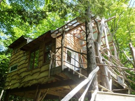 Mais à Glen Sutton, il est une autre espèce d’oiseau rare… qui pédale dans les arbres ! Embarquement immédiat pour le Vélo Volant, une attraction sportive, ludique et écologique qui mérite le détour. Installé dans une sorte de télésiège muni de pédales, semi-allongé et harnaché, prêt pour la balade ! Suspendue à un câble, la nacelle avance au rythme des pédales et des envies de rêver du voyageur des futaies. A portée de main, les feuilles bruissant dans le vent, tout autour, des érables et sapins centenaires et quelques oiseaux, au-dessous (jusqu’à 33 mètres, le plus haut du monde !), la route qui se dessine, un sentier qui chemine ou la rivière qui coule. Mais là-haut, seul au monde ou presque, on se croirait dans un autre monde, où un autre regard est possible. Sur la forêt, sur la nature, sur la vie. Et on s’imagine, tel Elliott s’envolant sur son vélo et pédalant devant la lune pour ramener son ami E.T. dans son monde à lui… S’envoler vers un monde meilleur ?
