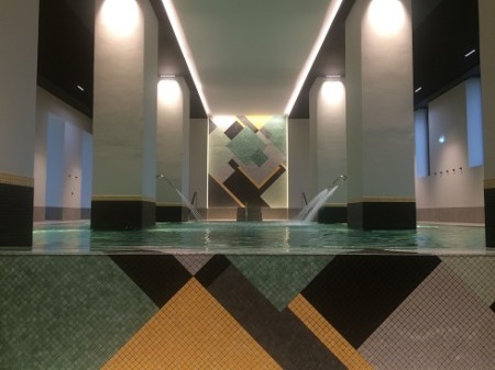 Autre atout de charme caché dans les caves voûtées du sous-sol : le spa, 5 Mondes et 1800 m2. Niché dans les fondations de l’ancien château de la ville, le lieu est intimiste, malgré ses dimensions, mêlant murailles du Moyen-Age et parcours Kneipp, eaux salée et thermale, sauna, hammam, bassins et une sélection de soins à la carte prodigués avec un professionnalisme remarquable (et pas si usuel).