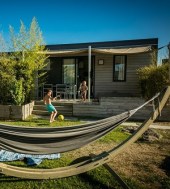 Quant au home-sweet-mobil-home, il est fonctionnel et décoré sobrement, tout équipé et adapté aux tribus, avec sa pergola de bois et son hamac américain. Bien sûr, l’idée ici est de vivre dehors, de profiter des multiples animations, de se nouer d’amitié d’apéro avec le voisin d’emplacement, et de savourer les joies d’un resort tout à pied, à la fois kid’s et dog-friendly.