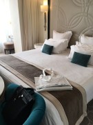 Avec son spa Loréamar, le Grand Hôtel se positionne parmi les thalassos en vue de la côte basque. Mais propose bien autre chose : son Histoire, son allure de paquebot rose et blanc posé au ras des flots, son restaurant étoilé et ses chambres récemment rénovées. Derrière la façade majestueuse et le classicisme du lobby, du bar et du restaurant, les chambres ont en effet misé sur l’élégance contemporaine, un confort moderne digne d’un 5 étoiles et des coloris mêlant camaïeu de beiges et touches de couleurs vives, afin de laisser le spectacle pour la star des lieux : l’océan dont la vue depuis les terrasses des suites ou les balcons intérieurs donnent envie de s’attarder le temps d’un café, d’un thé et d’une bonne lecture.