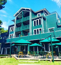 70 hectares… et l’océan. Le nom à lui seul est une invitation, entre mystère et poésie. Invitation à s’éloigner un peu de l’océan, à prendre de la hauteur dans la dune et la forêt landaise et à découvrir ce lieu, chargé d’âme et d’histoire… Niché entre les pins et les greens, le 70 Hectares fut longtemps l’Hôtel du Golf et après quelques années d’abandon, il arbore à nouveau son architecture de bois vert sapin aux airs de Nouveau Monde. Mais il offre, depuis sa réouverture à l’été 2021, un tout nouvel univers, mêlant savamment design épuré et détails cosy, confort et convivialité, élégance et nonchalance. Un mélange de Hamptons et de Louisiane, d’océan et de campagne et de way of « Landes » bien sûr. Une ambiance signée Domaines de Fontenilles, le groupe hôtelier indépendant et singulier dont les adresses de charme s’égayent de Marseille à Minorque, de la Provence à la région parisienne et d’Hossegor à Seignosse…