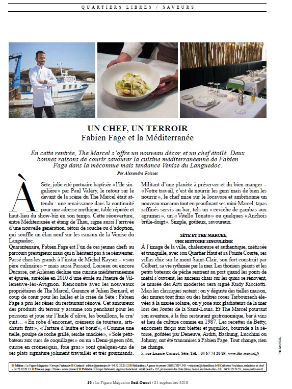 Dans les pages Quartiers Libres du Figaro magazine, The Marcel, l’histoire d’une renaissance avec le chef Fabien Fage.